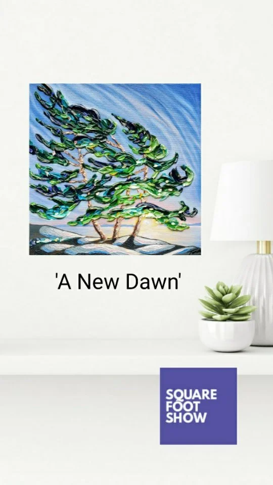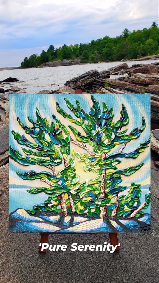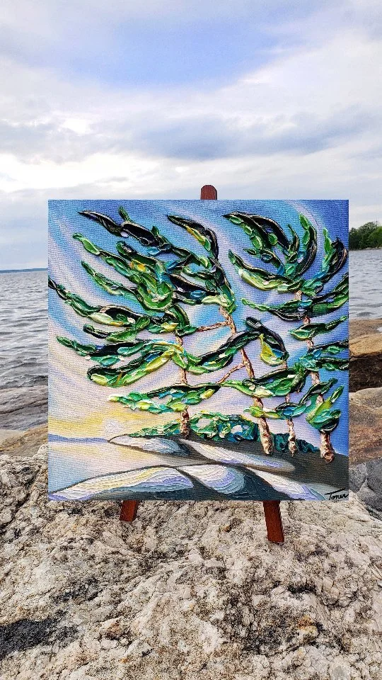 Ashley Toner is a Canadian artist inspired by the beauty and vibrant landscapes of Northern Ontario. Her upbringing on Georgian Bay near many lakes and windswept trees provides her a unique perspective and appreciation of the splendor and strength found in nature. Her work explores colour and texture through the use of palette knives to create an uplifting and serene experience for the viewer. Ashley’s paintings invite you to feel the refreshing breeze off the lake, hear the rustling of the leaves and gentle waves, and experience the calm, enduring resilience of the trees and meditative scenic landscapes.