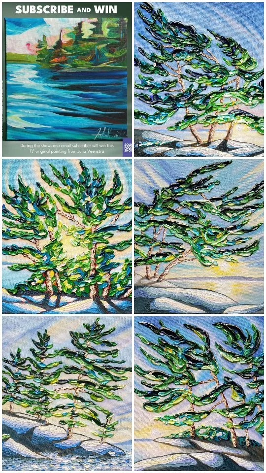 Ashley Toner is a Canadian artist inspired by the beauty and vibrant landscapes of Northern Ontario. Her upbringing on Georgian Bay near many lakes and windswept trees provides her a unique perspective and appreciation of the splendor and strength found in nature. Her work explores colour and texture through the use of palette knives to create an uplifting and serene experience for the viewer. Ashley’s paintings invite you to feel the refreshing breeze off the lake, hear the rustling of the leaves and gentle waves, and experience the calm, enduring resilience of the trees and meditative scenic landscapes.